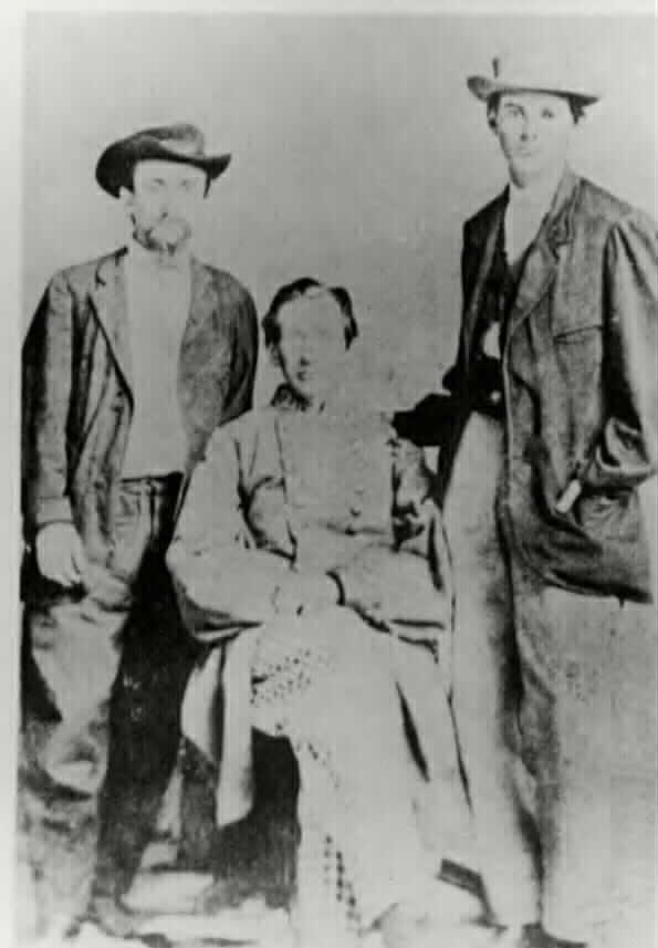 This photo was taken in June of 1867. It was taken at Nashville, Tenessee. The man on the right is Jesse (note the concealed left hand), the man in the middle is his older brother Frank James, and the man on the left is Charles F. "Fletch" Taylor, a guerrilla who rode with the Jameses during the Civil War.