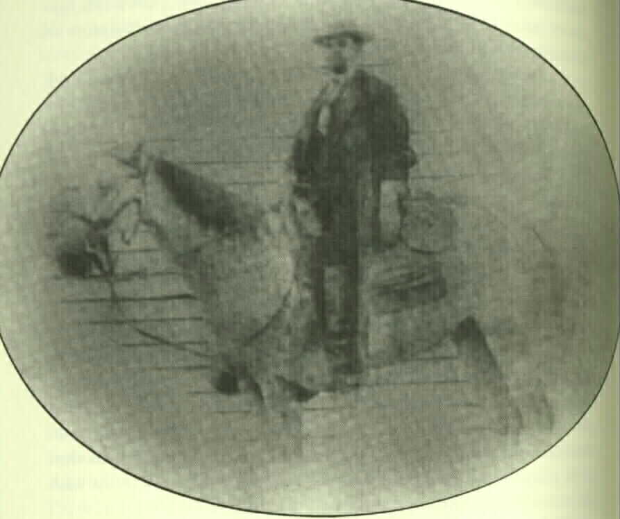This photo of Jesse is thought to have been taken in Sherman, Texas during his honeymoon with his wife, Zee in 1874. It is the only known photo of Jesse on a horse. The horse's name is Stonewall, one of Jesse's all-time favorites.