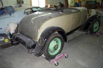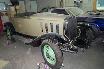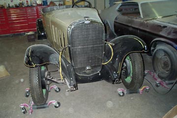 The body and hood has been reinstalled, pin striping completed, and wiring routed to the major areas.