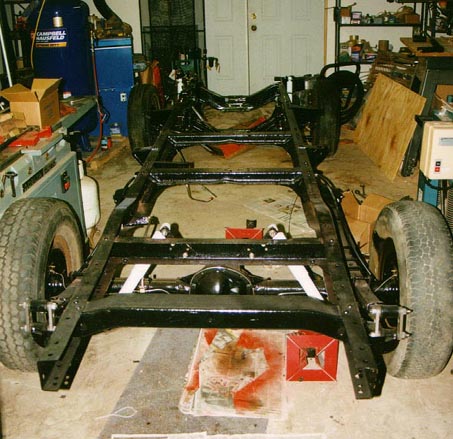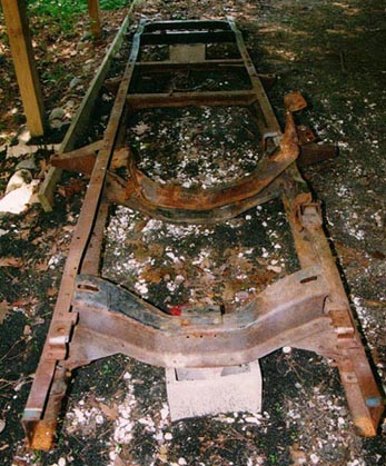 These pictures show the frame after restoration and reassembly of running gear which was also restored. Original parts were used whereever possible with the exception that new grade 8 bolts were used, especially in critical areas.