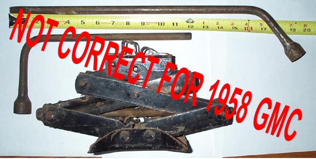 This is a picture of what is supposed to be the correct jack and jack handles for the 1958 GMC trucks. I am told that both handles were used depending on what was available at the time of production. This jack and the short jack handle was in my truck when I purchased it.