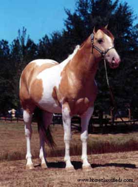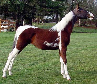 Kashmir (Summit Coco N Creme ® x She Cruzes Pacer ®) 1989 bay tobiano stallion. FFC: 1992