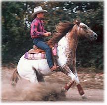 Sheza Creek Riser (Heza Banjo Buster ® x Creek ®) 1991 bay blanket appy mare. Open: 1994+