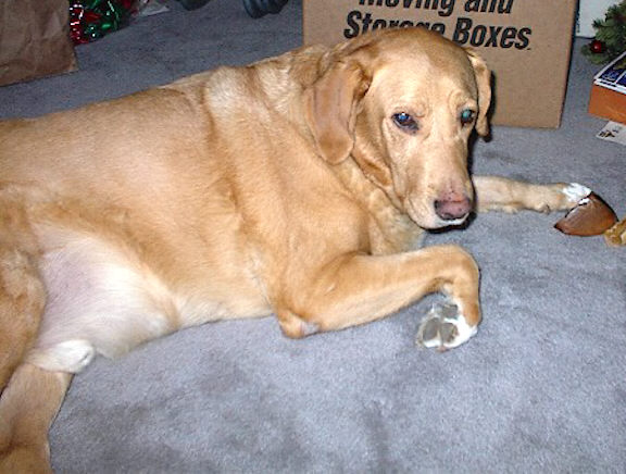 This is my husband's dog, DJ. He's been around since before I came into the picture. He's a good old dog. Damn fat furry fucker!