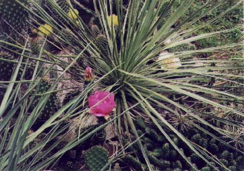 Anyway, Yucca glauca is one of the true desert-type yuccas, unlike Y. flaccida and Y. filamentosa, which everyone grows around here. Those are from the southeast United States, and most people in Michigan do not know this. Y. glauca has a wide range, covering most of the plains states and in the deserts, as far east as Iowa, and perhaps as far north as central southern Canada. I have seen plants which look to me like Y. glauca in Oklahoma, and they were growing alongside plants with slightly wider leaves, but thin like those of Y. flaccida and Y. filamentosa. I would guess that these plants represent a hybrid swarm or part of a cline, but then who knows? After all, I can't distinguish all the species of Yucca. I just know what looks like a desert Yucca and what looks like a Georgia Yucca.