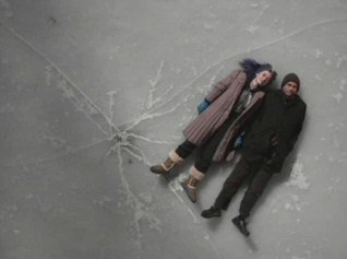 Each of Joel's memories unfolds before us at the moment it's being wiped out. In something like reverse order, we watch the story of his relationship with Clementine: how it flowered and degenerated between one Valentine's Day and the next. The potato dolls in Clementine's apartment; the night she and Joel lay on the frozen Charles River; the day he dodged his fears of fatherhood by telling her she wasn't stable enough to raise a child; Clementine's psychedelic series of changing hair dyes; the fights and cuddles -- as Joel remembers everything, he enters into, and interacts with, those same memories, pleading with them to change in some way. But they can't.