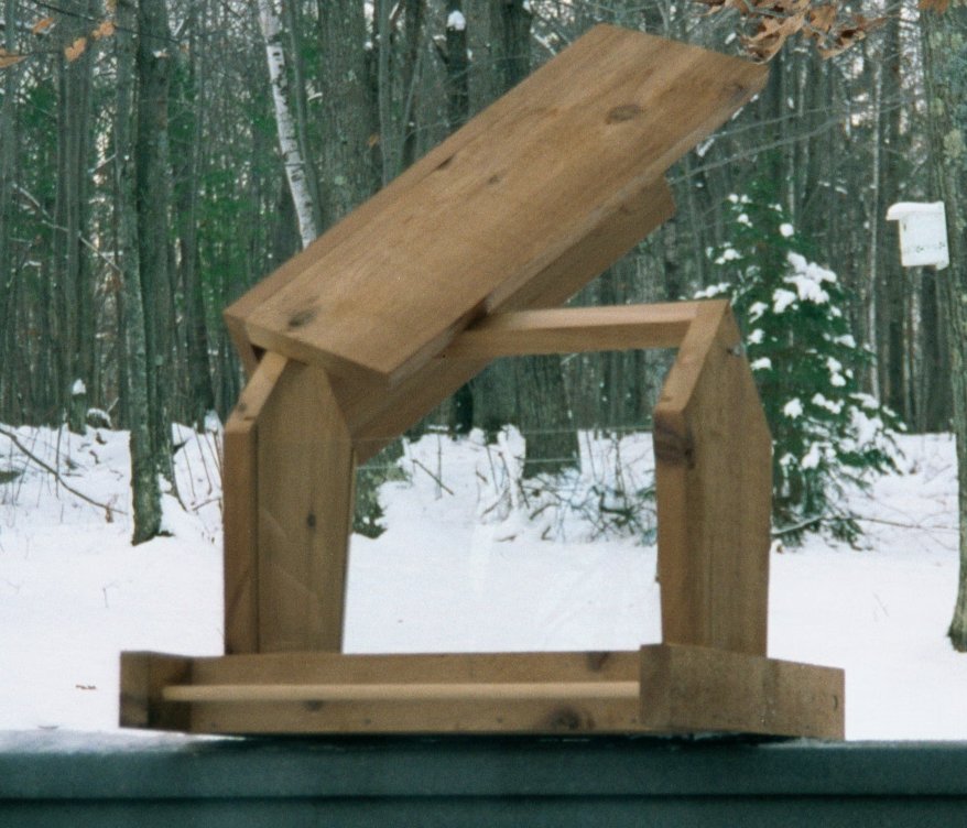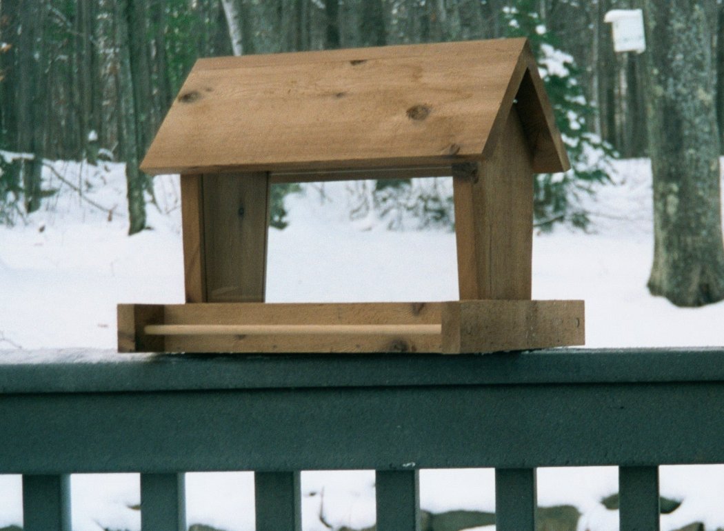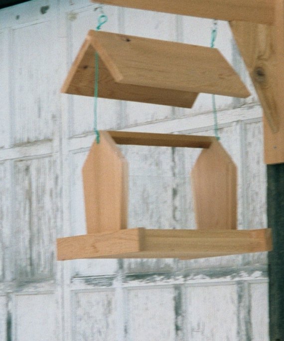 (hanging) Made of all natural cedar 7/8". It has a 45 degree angled roof, five degree angled glass, holds almost 10 cups of seed, It slides easy on the two nylon coated steel hangers. Dimensions: 15"W, 13"D, 15"H (Weighs 9 lbs.) Availability: Usually shipped 24 hours after receiving order and payment. Item Number: #402 Price: $41.00 Shipping Included!!!!