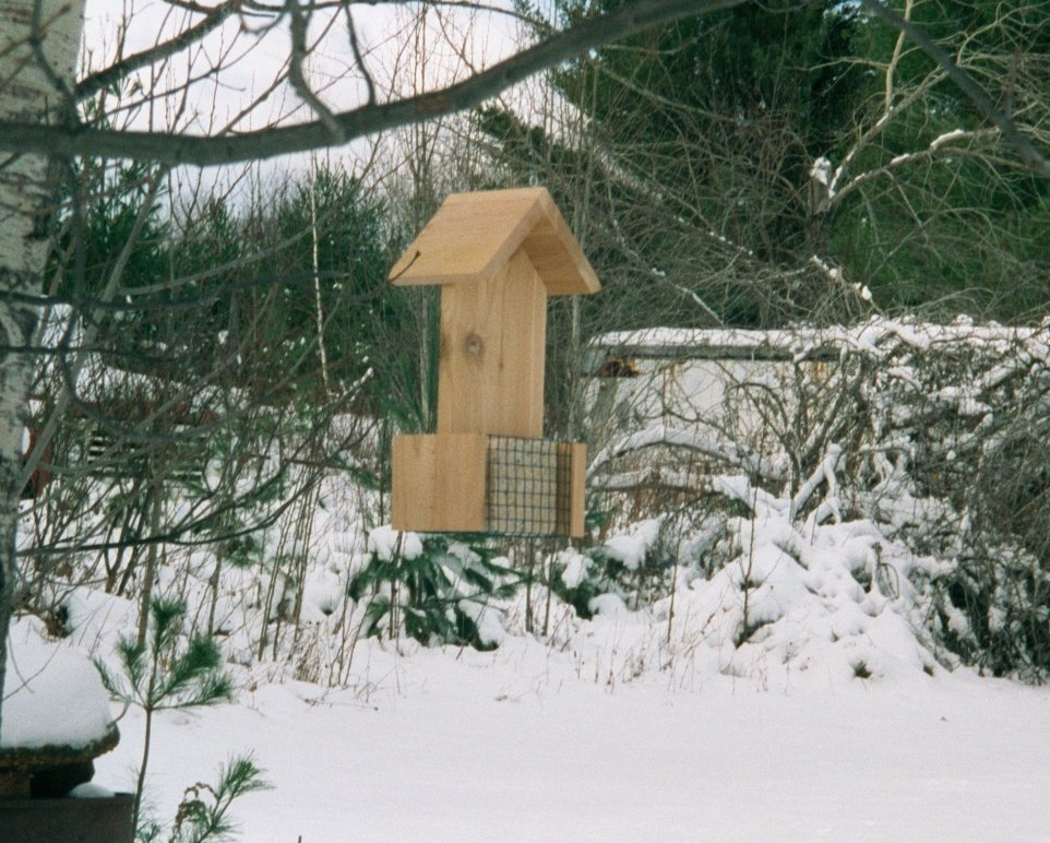 (hanging) Made of all natural cedar 7/8". It has a 45 degree angled roof, ¼" nylon coated mesh, holds two full size suit cakes. Dimensions: 9"W, 6"D, 17"H (Weighs 5 lbs.) Availability: Usually shipped 24 hours after receiving order and payment. Item Number: #405 Price: $28.00 Shipping Included!!!!