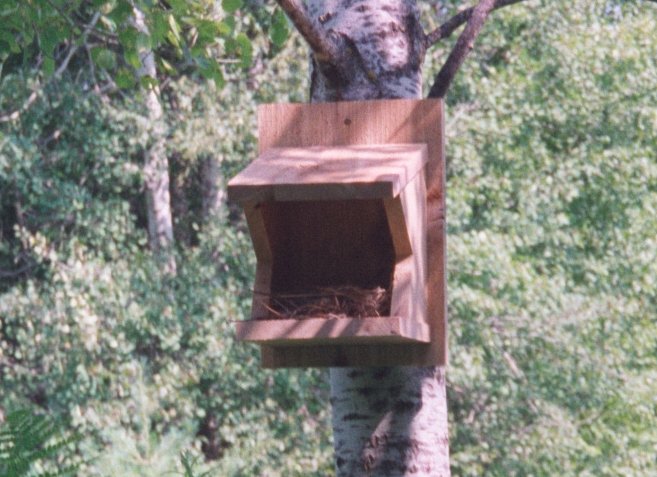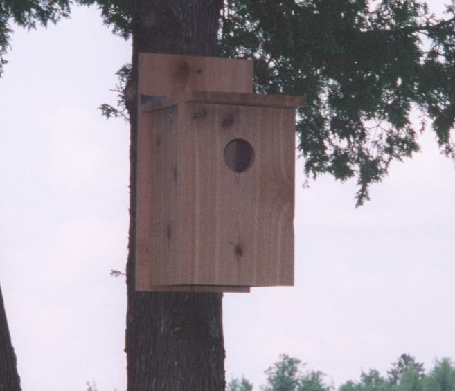 Made of all natural cedar 7/8". The American Kestrel box should be placed in relatively open country on a tree or post. The Northern Screech-owls can be attracted along the edges of hardwood forests adjacent to a field or wetlands. The back is pre-drilled for easy installation. Other Birds that will use this nesting box: American Kestrel and Northern Screech-owl (hang 10'-15') Dimensions: 11"W, 13"D, 22"H (Weight 13 lbs.) Opening: 3" diameter hole Availability: Usually shipped 24 hours after receiving order and payment. Item Number: #104 Price: $43.00 Shipping Included!!!!