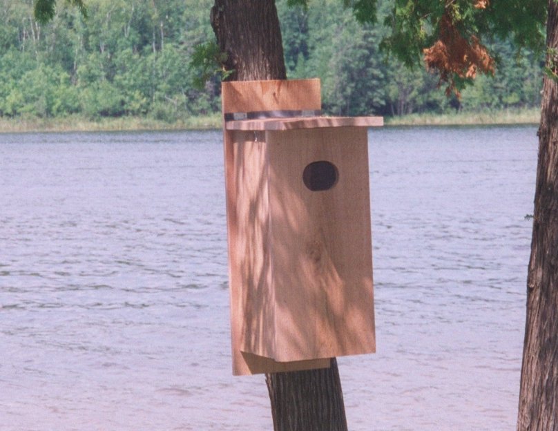 Made of all natural cedar 7/8". This box should be placed over water or within ½ mile of a wetland. The hinges are galvanized and it has rubber under the hinges to stop the rain. Inside is ¼" galvanized mesh for when the babies leave the box. Other Birds that will live in this house: Wood Duck and Hooded Merganser (hang 6'-8' over water or 20' in woodland habitat). Dimensions: 11"W, 17"D, 32"H (Weighs 20 lbs.) Opening: 3" high, 4" wide oval hole Availability: Usually shipped 24 hours after receiving order and payment. Item Number: #109 Price: $55.00 Shipping Included!!!! |