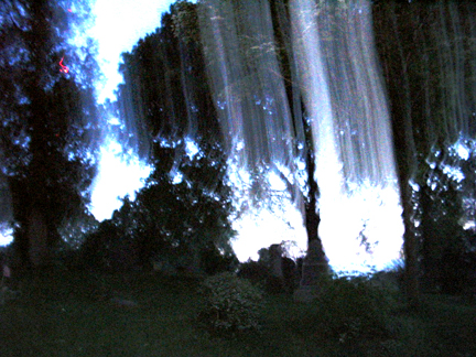 (Photo taken 5/25/04. Mysterious white streaks from Onondaga Cemetery, Onondaga, MI.)