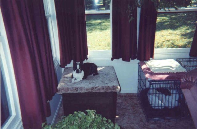 Don and I are owners of the Diamond Den Kennels... We breed, train and show bostons... But our real love is just all Bostons.We have been in Bostons for over 25 years and have had many Champions. But We just can't wait to retire them so we can just be friends and feet warmers...... We are retired now so spend a lot of time with our internet friends and their furbabies....Please take a look around our Web page and see for your self....Lots of Love here, and do sign our guest book. Meg-Abby-CrickettThese are our first 3 Bostons....We had 14 AKC Champions from these three wonderful Bostons.... The love of our life... Now all gone to Rainbow Bridge.... This is Andy, now called Spy, at 5 weeks old. Annie the Mom of Spy doing her favorite thing. Annie again , her favorite place unless she is in our bed. This is Murphy Girl (by the way) named after Murphy Brown... Guarding her moms new Great Grand baby... Gabreilla Murphy and Annie real buddies...sharing a nap in moms chair... Annie, waiting for Aunt Connie to get off the computer so they can play. Annie and sweetcheeks, Spy. She really loves her babies. My Beautiful Murphy, Can you tell she is my princess? Mom said I could chew on my bone if I was good.... sometimes I get carried away and I broke off my tooth....so have to chew easy... I think there is a ray of sunshine coming in here... I will just hang out and see. Annie says....MOM.... someone is at the door, I think it might be Aunt Connie & Uncle Roger from South Dakota! View My Guestbook Sign My Guestbook Page 2 SUPPORT RESCUEclick the banner below to visit Midwest Boston Terrier Rescue Website. My Favorite Web Sites S.Dakota Friends, Mollie & Max Boston Rescue's In The Midwest IL Friends, Sophie, Stella & Ted BostonAid Rescue Group Visit Macy & Beau Best Boston Site On The Internet