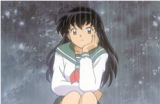 On the left is one of my favorite images of Kagome, and on the right, is her showing off her archery skills!Kagome Kagome is the reincarnation of the ancient priestess Kikyo, and also brought the Shikon Jewel back to the feudal era. She loses the jewel, and it scatters all across the land. Now, Kagome, along with Inuyasha try to track down the shards of the Sacred Jewel, to also stop the forces of evil from slaying everyone and taking over the world. She later falls in love with Inuyasha as they get to know each other a lot better. Kagome is also well know for her catch-phrase "Sit Boy!!", which befalls Inuyasha (FYI, if you want to know more, watch Episode 2! ^.^) Kagome, overall, is a nice person to Inuyasha, and is his first real friend, other than Kikyo.
