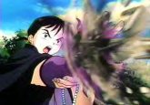 Sango comes from a long line of demon exterminators, who destroy demons, and use parts of those demons as crude weapons. Naraku saught out and destroyed all but two of the demon slayers, Kohaku (Sango's younger brother, who Naraku possesed amd forced him to kill almost all of his family, and Sango herself, who was at one point or another, kept alive by a shard of the Shikon jewel. She even attacked Inuyasha, because Naraku stated to her that he had slained her entire village. She eventually came to her senses (after Inuyasha basically takes her out) and joins up with Inuyasha and everyone else. She has a small little demon named Kirara that can transform into a powerful fire-breathing demon. She also secretly loves Miroku, even though he tries to play the role of the playa! Sango is one of the liveliest people in Inuaysha's party, and uses a wooden boomerang to get her tasks acomplished. She also kinda resembles Kikyo in a way, but has no real relation to her or the sacred jewel. Her village, however, was the birthplace of the Shikon no Toma.