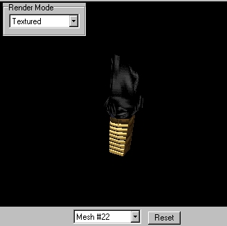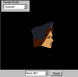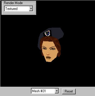 | Here, Lara's head has been modified with a 'special forces' type beret. Her ponytail has been reduced to 'microscopic' proportions in order to eliminate collision problems |
