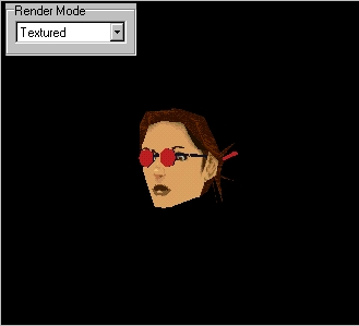 | Here, Lara's head has been re-worked to include a 'Sloppy' bun, almost held in place with a red pick. Also, Lara has been given rose colored sun glasses. In game, they are semi-transparent. Again, you'll have to use the "Tiny Ponytail" meshes. |