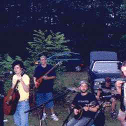 The Draggin' Anchor's outside at Stacey's birthday bonfire.(07-03-04) They played for over 90 minutes as the sun set and the fire roared.