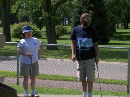 in the golf tournament. Aunt Judi supervises the lesson!TL ready to tackle hole #1! Rich - "And this year's victim is??" Rich admits David is competition this year.
