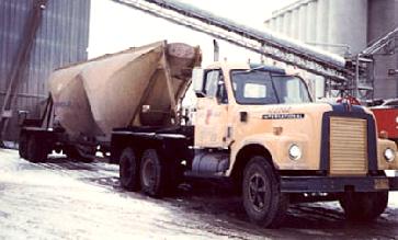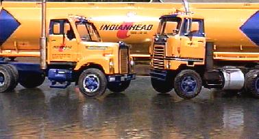 Usually International Harvester power units pulling tankers, dry bulk tanks, and box vans.