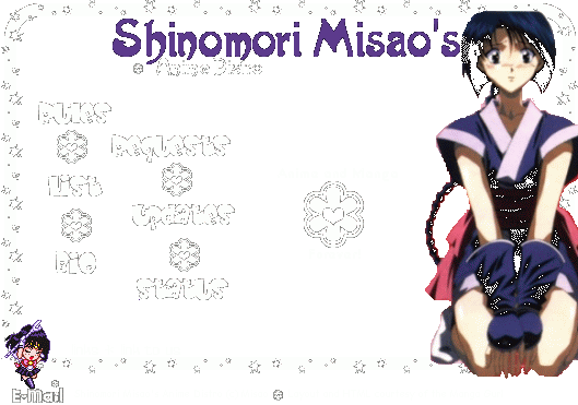 Disclaimer: All of these tapes are fansubs. I do not copy tapes purchased from a store. (I have quite a few of those but they are not on my list.) Please consult my reference list if you are wary of sending a request or trading. *If you are upset by a title on my page, fansubber or any other company with a legal right/created something, please e-mail me and if you want I will remove a title.* I am fairly young and new at this so please be lenient with me, I don't have many master tapes and I don't have much access to lots of kinds of blank tapes. Thanks!