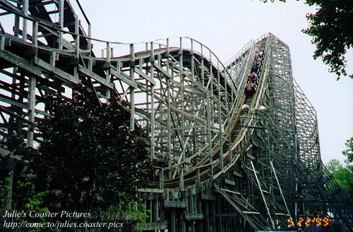 And now we have Big Brad the DJ playing.... oh no, don't play that.... oh, come on, things were going so well.... no, Susan, I'm not going to do it..... oh, okay.. it's fun to stay at the... We board the last car and we're off. My God, the view. My God, the lake looks so pretty. My Gaaaaaahh!!!!!!! We get whipped down the first hill, second hill, tunnel, up and whoa!! falling out the side, oh my God, what a bank! Heading back, and UPsidaisy, out of my seat, UUP we go again... and UUUP one more time, through the mist. Wow, great air time, really throws you out of your seat! The ride ends and almost everyone in the train is applauding. I must say this beats Wild Thing, and every other hyper (call me a labeler) hands down. Ties with Raptor for best steel coaster I've been on. Well, we rode the Corkscrew and Disaster Transport after that, along with Chaos and the Log Flume. I liked Disaster Transport, I thought it was kitschy! All it really needs is a good drop, camp it up some more and you've got a funny, scary roller-coaster! And the Log Flume was easily the best I've been on. The front literally lifts off the water after the final drop and you skim the top for a good 50 feet or so. Well, we rode every coaster plus 2 other rides and it's..... 5:00. Three hours to spare. I was led to expect maybe 4-6 rides the entire day. Saturday was certainly more crowded, but we never waited longer than an hour. Big Brad moved to the Raptor on Saturday night and he is an amazing DJ. He even surprised a woman waiting in the queue with a proposal from her boyfriend. It was an amazing scene. The fireworks went off while we were in the Raptor line and that finale tops anything I've ever seen. It must have lasted 5 full minutes of continuous bombs and explosions. The crowd cheered through the whole thing. I left Cedar Point completely awestruck. Well, not COMPLETELY. How a traditional amusement park can not have one lousy snow cone stand is beyond me. And where are all the XXL shirts? Haven't they heard baggy is in? But those not-so-minor quibbles aside, I had an absolutely wonderful time. And all of the naysayers with their predictions of doom were wrong, none of what they said came true. Cedar Point brought out the little boy in me, and I think that's all a really great amusement park can do.