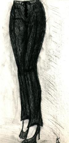 1998 Once again, a pair of legs, this time encased in leather. I did this drawing for a poster display, it wasn't the chosen final design. {Back}