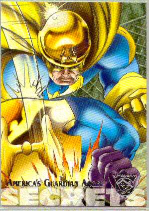 -- When reporter Sam Mace was nearly killed investigating a spy ring headed by Baron Zero, he received a blood transfusion from Super-Soldier which granted him abilities which resembled his hero, inspiring him to don a costume and fight crime on US soil. - created by Mikel Midnight