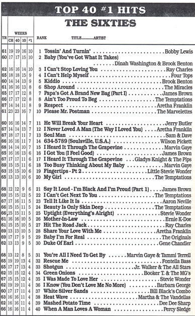 Note: Many hits did not make #1 for enough weeks to