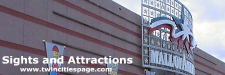 Mall Of America : Official site is www.mallofamerica.com . The definitive retail attraction of the Twin Cities metro area and Minnesota, located in state's third largest city, Bloomington. Mall of America is in proximity of the international airport and is well integrated into the transit system. This makes the shopping attraction a "quick stop" for travelers on the way to another destination, stopping for a half day to go to the mall. It is the largest retail center in the U.S. and encompasses more than 400 businesses. It has a college, underground aquarium (Underwater World, now about 5 years old), theme park (Camp Snoopy), theater, over a dozen specialty restaurants, the only Legoland in the midwest, bars, gift shops, Planet Hollywood, and nearly a half dozen separate food courts. The mall was built on the site of the old Metro Stadium that became obsolete after the Twins relocated to the Metrodome. The Mall of America was proposed in about 1990 and was finished one and a half years later, several million below the budget granted and ahead of schedule. The mall does tend to take a lot of money, as stores are plentiful and slightly more expensive from other locations, due to the high rent it takes to maintain a store there. Some stores have had to leave because of the inability to afford the steep price. Barnes and Noble now anchors the main Rotunda, site of many live concerts, guest appearances, contests and other social events. If you are going to the Mall, make sure you have money to spend. Also, take precautions since minor theft can occur if you are not careful (and your possessions can fall out if you try the rides at Camp Snoopy).