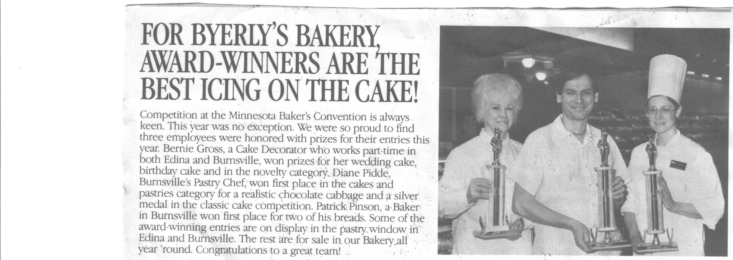 I won first and second place in 1989 at the baked foods competition for breads in the upper Midwest bakers convention in Minneapolis, Minnesota. USA.