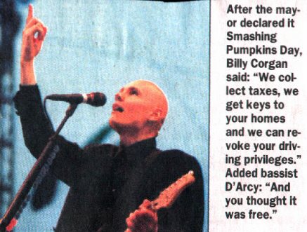 This will eventually contain Smashing Pumpkins songs, tabs, thoughts, and whatevers. If you love them, like them, or hate them(die you bastard!), then drop me an Email with some personal reflections, thoughts, or cares. I tend to know quite a bit about them so I may be able to answer questions as well.