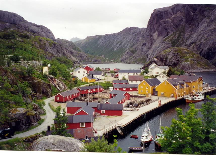 Here is a shot of both colors of rorbuer or fisherman cabins.