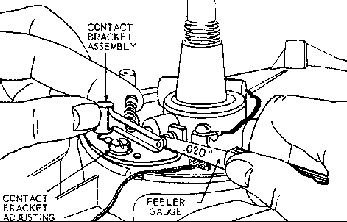 NOTE: Always clean breaker points after adjustment. Open the points and insert a piece of lint-less paper. Draw the paper through the points. Open points when removing paper so it will not tare, leaving paper between the points.