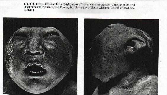 This picture was given to me by a Doctor at Texas A & M who has been researching Anencephaly for 15 years. He was very helpful in answering our questions and in sending us information regarding Anencephaly. Although these pictures are not easy to view, I believe that it is important for parents to be educated about their baby's condition in order to better prepare for the child's birth.