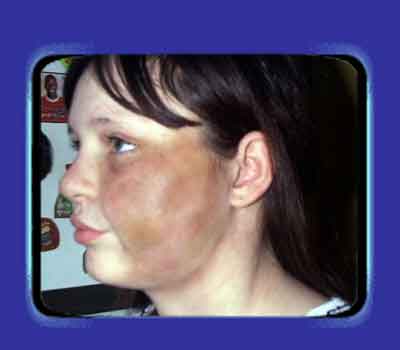 Michelle Jessett of Wales has been suffering from a mysterious skin condition since she witnessed a chemical spill in 2002. Now, she cries tears of acid. The acid reacts with the salty tears and causes painful blisters and sores on her face.