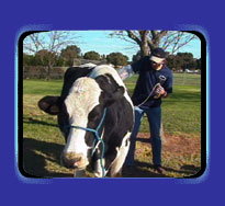 In a minor and painless surgical procedure, U.C. Davis scientists install a 4-inch circular, removable transparent "porthole" right into a cow's side so they can see into one of the animal's stomachs.