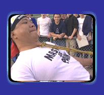 Terry Cole will pull 12 nails out of a wooden plank in 90 seconds with his teeth!