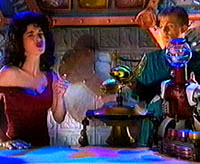 Segment Three: The sultry witch from The Undead visits the satellite, and finds that her shape-shifting talents are a bit rusty - out of control, in fact. She involuntarily metamorphoses at a furious rate, becoming a cat, a lizard, and a series of other animals and inanimate objects, really tiring her out. She's stuck in the guise of a bottle of Clorox bleach when Mike and 'Bots must return to the movie.