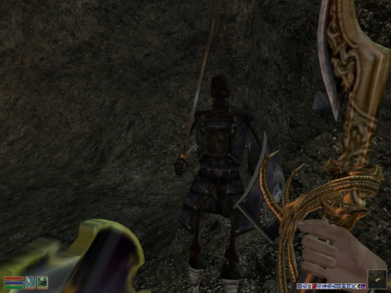 Here's a member of the Dark Brotherhood. I've foughten a lot of these guys so far. I think they're a main part of the quest, or at least in the beginning they are.