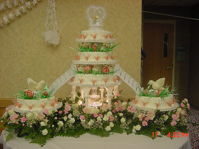 The Wedding Cake (coconut, ?, etc..) with a water fall!