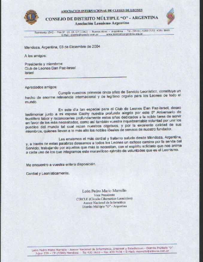 Leones "Dan Paz-Israel", uno de los 35 Clubes de Leones existentes en Israel