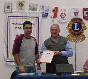 Al mismo tiempo, y simultaneamente con entregarle un diploma de agradecimiento y recordatorio del evento, el Presidente del Club le informo de los principios del leonismo y de la actividad que Lions realiza en todo el mundo.