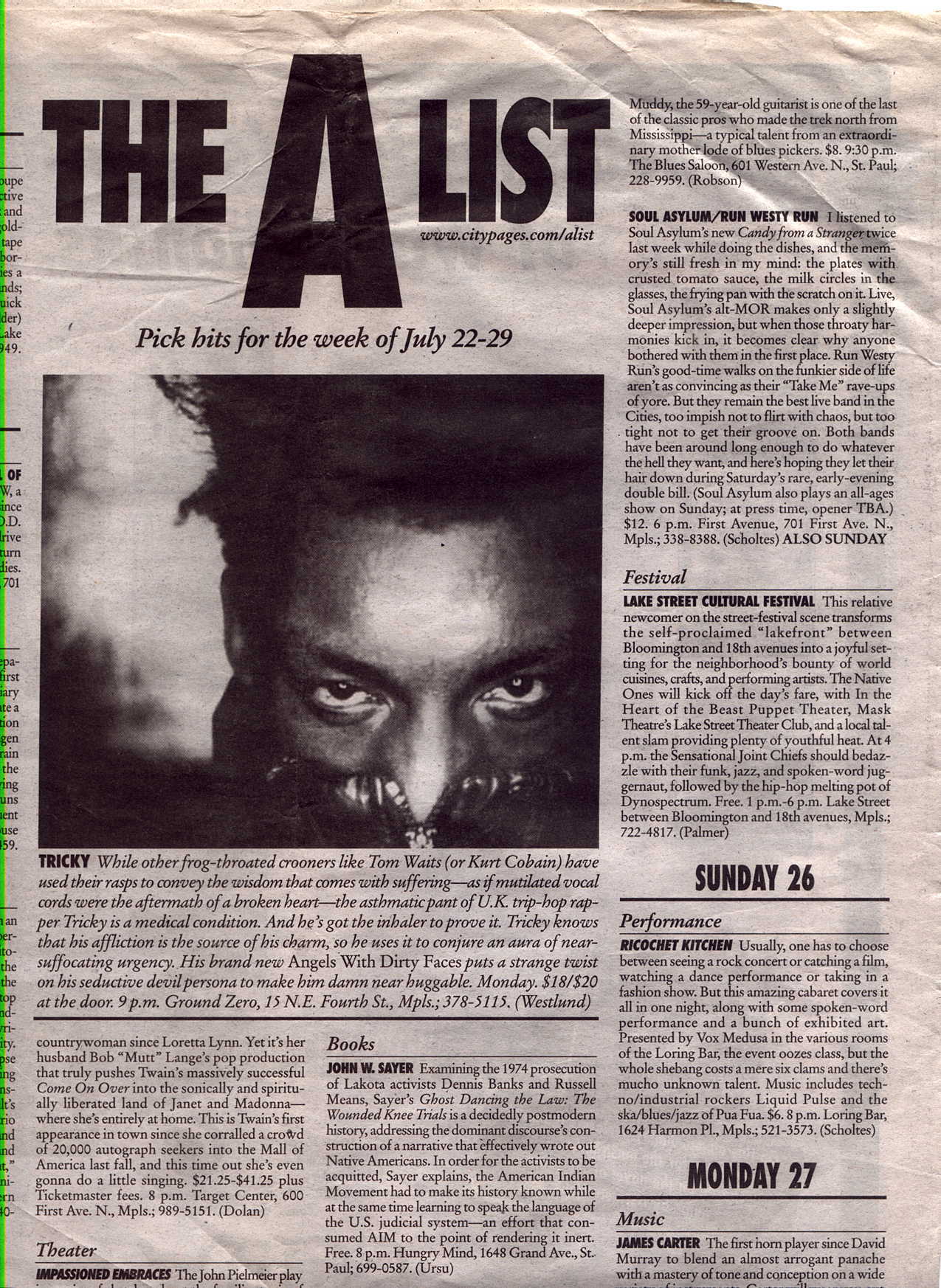 The City Pages' A List, July 22, 1998 (Puafua's under Sunday the 26th)