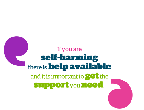 While you may feel ashamed and embarrassed about your behavior, you can find supportive, caring and nonjudgmental help. Getting appropriate treatment can help you learn healthier ways to cope — ways that won't leave your body permanently scarred. Try to work up the courage to talk to someone you trust, whether it's a friend, loved one, health care provider or a school official. Someone you trust can help you take the first steps to successful treatment.