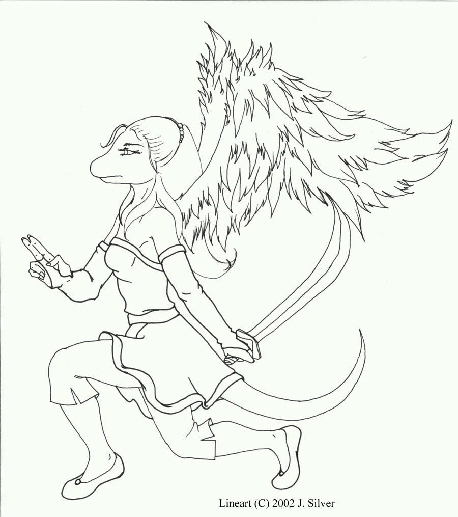 | Here's a couple of line art jpg's that you can save to your hard drive and color. All that I ask is that you give me credit and a link to my page if you post your colored art on the web. And a copy of the art would be nice, but is not required. I'll most likely color a copy of these someday, but I haven't had time yet ^_^