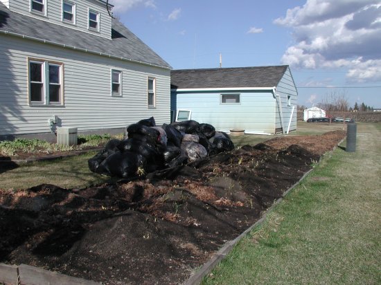 When I first take off the bags of leaves, there is still ice. |
