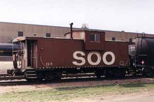 Crew picking up the switch list & SOO caboose 114.