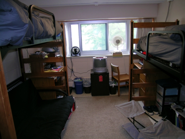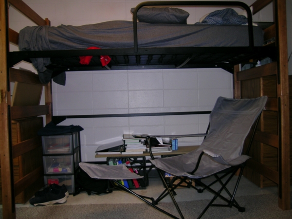 Here's my room with the beds lofted and funiture in.