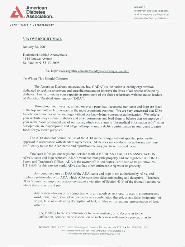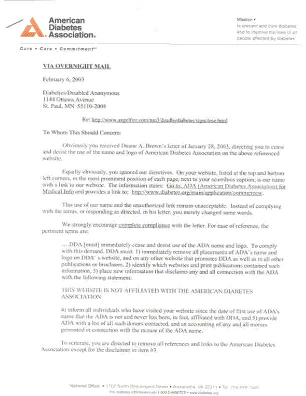 Diabetes Association and one named Diabetics/Disabled Anonymous,