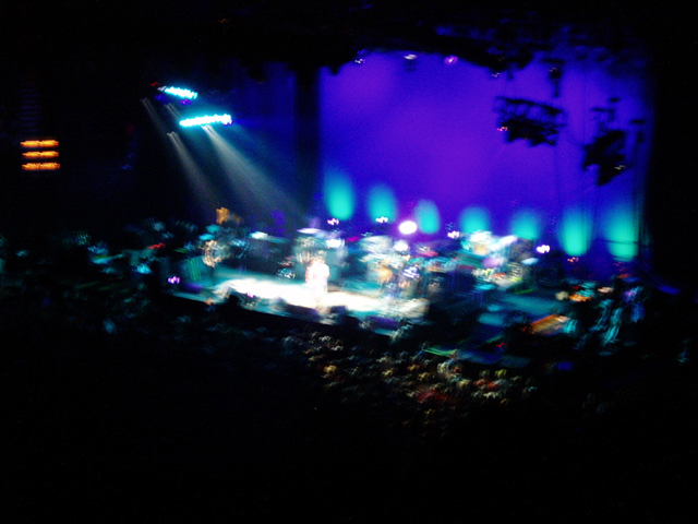 This is from a Pearl Jam concert. The mood is contemplative or somber. This is conveyed through the lighting by the color and the angles.